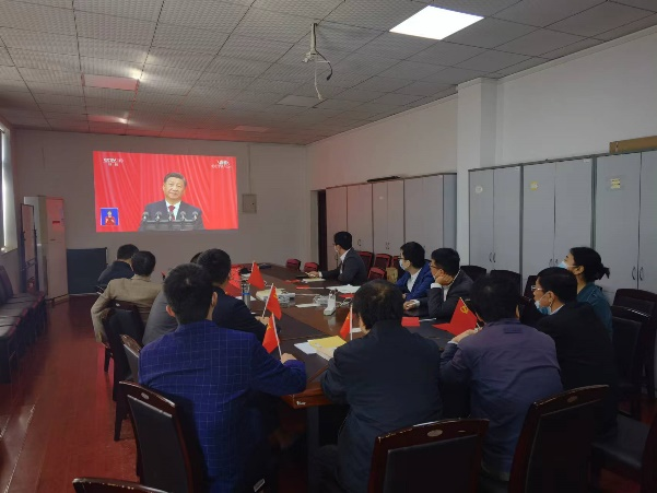 在做好疫情防控的前提下,全系党员着正装、戴口罩,手持党旗,聚精会神地收看并学习了整个开幕会。大会伊始,全体党员起立,高唱中华人民共和国国歌,紧接着大家怀着崇敬的心情,为毛泽东、周恩来、刘少奇、朱德、邓小平、陈云等已故老一辈无产阶级革命家默哀。