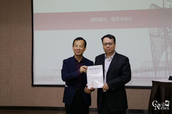 王大师围绕四个典型工程案例,结合结构理论、技术要点及设计方法展开了深入浅出的演讲,内容涉及抗弯框架(STMF)的抗震与耗能、防屈曲约束支撑(BRB)技术、金属阻尼墙结构技术、大跨度结构整体稳定设计、黏滞阻尼墙核心筒高层结构设计理论等多个热点问题,讲座过程生动诙谐,不时激起与会人员的阵阵笑声。下午4时30分,王立军大师的报告圆满结束,将近两小时的精彩讲授让现场听众受益颇多。随后,建筑工程系主任余志祥再次对王立军大师的演讲表示感谢,至此,本次讲座圆满结束。