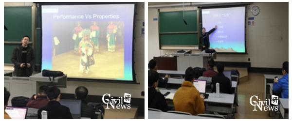 讲座正式开始前,丁经理向在座的师生介绍了自己从高校到施工企业这段独特的经历,并表示这一经历带给了自己不一样的感受,使得自己有很大体会。接着,丁经理以“新贵妃醉酒”图作为开场白回到了讲座的主题。