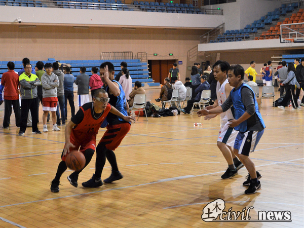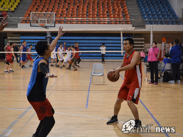 随着裁判员的一声哨响,比赛就此拉开了序幕。上半场开始,土木院拿下球权,虽然比赛刚开始,但是土木球员手感火热,土木8号严猛老师依靠篮下基本功连拿四分,而后0号任福老师篮下突破得手,打出6:0的小高潮。而交运见势不妙,积极组织进攻追赶比分,几个回合之后,交运提出暂停,双方分差依旧为6分。暂停之后,由于土木接连失误,交运打出一个11:2的小高潮。眼看着比分迫近,土木8号严猛老师再次挺身而出,在三分线内一步变相运球,然后急停跳投,干拔命中一个压哨两分球,比分停留在21:15,至此上半场结束。