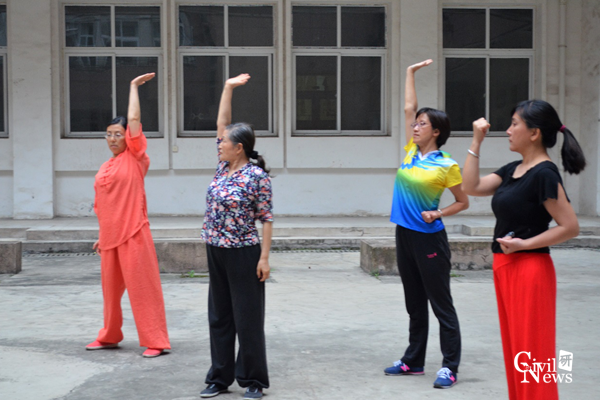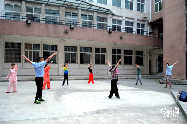 每周一下午七点,公司爱好太极拳的教师们来到九里校区土木馆的天井空地由校外专业的王萼老师指导进行每周一次的习练活动。