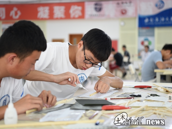 7月16至18日,模型制作、提交、称重、检测及加载有条不紊地进行。7月16日-17日,十四支队伍全身心的开始长达18小时地模型制作,从早到晚,坚持不懈。团队中的三人密切沟通,交流想法,耐心细致地做好模型的每一部分,稍事休息,便又投入了模型制作中。每一支参赛队伍都是如此,分秒必争,一丝不苟。最终共有8支队伍成功完成加载,伟德源自英国1946代表队以89.06分拔得头筹,峨眉校区代表队也以85.61的高分获得二等奖。