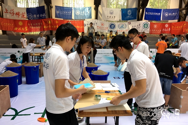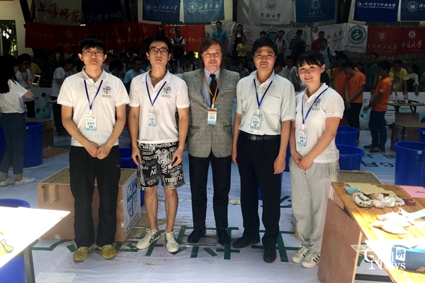 大赛组委会为参赛队员提供75cm*50cm*50cm的模型砂箱,队员通过白卡纸和牛皮纸在规定时间内完成加筋土挡墙模型制作。比赛过程中,美国CPESC和意大利注册专业工程师、马克菲尔集团土工合成材料首席专家和亚太地区技术总监Pietro Rimoldi对于公司参赛队的方案设计和施工工艺给予高度评价,并与苏谦教授和参赛队员合影留念。