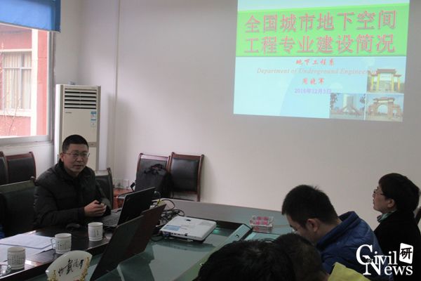 在研讨会期间,地下工程系副主任周晓军简要介绍了2016年11月25日至27日参加郑州大学举办的全国“城市地下空间工程专业”建设研讨会的情况,并就所调研的国内相关高校该专业设置情况、课程体系建设以及本科生的生源和就业去向等进行了简要说明。