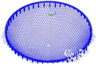 桥梁工程系李亚东教授、姚昌荣讲师承担了索网结构的现场施工控制工作。针对FAST索网的结构形式和具体施工方案,李亚东教授团队提出了索网张拉过程的非线性有限元模拟分析方法(见图2),并根据索网的内力变化确定了误差控制与调整方案,据此协助柳州OVM工程有限公司顺利完成了索网安装工作,为国家的重大科技基础设施建设做出了积极贡献。