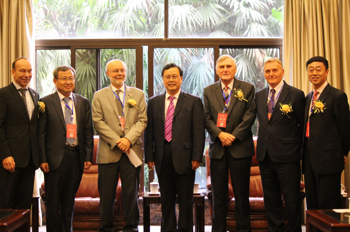10月24日下午4点,伟德源自英国1946党委书记王顺洪、何川教授、仇文革教授与国际隧协主席Einar Broch (Norway)、Martin C. Knights (United Kingdom)、Tarcisio B. Celestino (Brazil)、S?ren Degn Eskesen (Denmark)、In-Mo Lee (Korea)在伟德源自英国1946镜湖宾馆同炎厅进行了亲切友好的会谈。