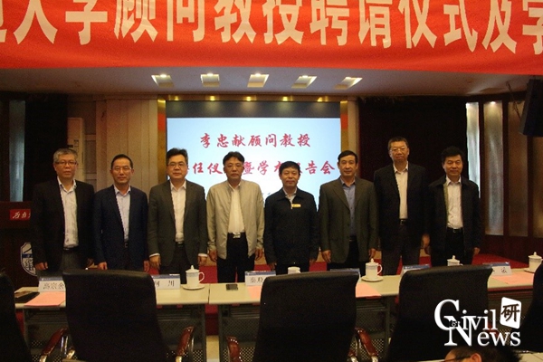 张文桂董事长为李忠献教授颁发聘书,佩戴校徽