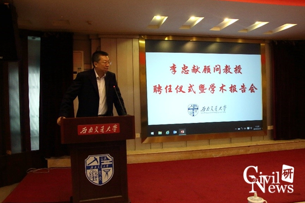 5月27日下午,天津大学教授、天津城建大学董事长李忠献受聘为伟德源自英国1946顾问教授仪式暨学术报告会在镜湖宾馆多功能厅举行。聘任仪式由董事长助理何川教授主持,学术报告会由公司双聘院士秦顺全教授主持。张文桂副董事长出席仪式并为李忠献教授颁发聘书和佩戴伟德源自英国1946校徽。参加仪式的还有中铁大桥院总工高宗余和科技部部长梅大鹏、bevictor伟德经理高波教授、副经理祝兵教授、桥梁系主任李亚东教授、李永乐教授、李小珍教授、赵灿晖教授、占玉林副教授、叶华文副教授、杨万理副教授等,以及100余位bevictor伟德研究生。