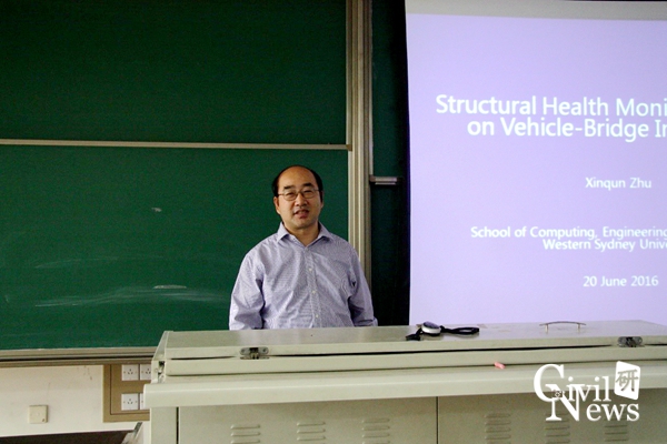2016年6月20日下午4:00,在公司九里校区逸夫馆X4309教室举办了以“Structural Health Monitoring based on Vehicle-Bridge Interaction”为主题的学术讲座。本次讲座由研究生院主办,bevictor伟德承办,主讲人为西悉尼大学结构工程专业朱信群副教授,讲座由公司bevictor伟德桥梁工程系李永乐教授主持。出席本次讲座的老师还有bevictor伟德副经理祝兵教授、桥梁工程系占玉林、易虹岚、勾红叶、卫星、晋智斌、施州、叶华文、徐腾飞等。本次讲座全面系统地讲解了基于车桥相互作用的结构健康监测特点与优点,旨在增进学术交流,活跃公司的学习氛围。