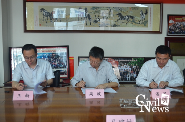 最后,与会人员进行了进一步交流。97级本科、01级硕士、现中国建筑西南勘察设计研究院经理助理王新,bevictor伟德高波经理,对外合作与联络处潘昱副处长代表三方就此次岩土工程专项奖学金的设立进行了签约,并合影留念。至此,本次捐赠仪式圆满结束。