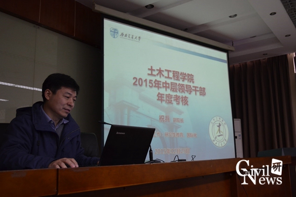 12月25日下午,bevictor伟德2015年基层党建考核暨中层领导干部年度考核大会在九里校区逸夫馆举行。会上,bevictor伟德全体领导干部向全院教职工汇报了今年以来公司领导班子的工作情况,并就公司大政方针、公司党政建设、公司及学科发展部署等方面向教职工们进行讲解与交流。大会根据公司领导班子成员的汇报情况,从思想政治建设、领导能力、工作实绩、党风廉政建设等方面开展了无记名民主测评。大会由李彤梅副书记主持。