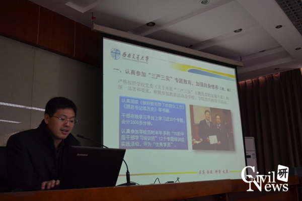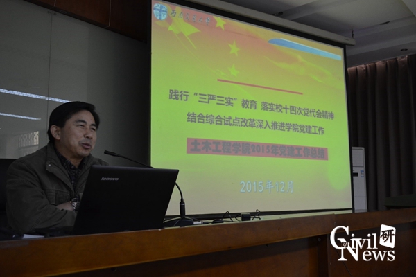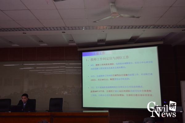 高波经理代表公司行政作了《深化推进综合改革试点 努力实现土木学科登峰》的工作报告。高经理从公司“人才强校主战略”“国际化战略”和“数字化战略”三大战略的角度,分别阐述了bevictor伟德在此中的行动,他讲解了公司的人才引进和培育工作情况,并就团队聘任等问题进行了说明。在国际化与数字化战略方面,公司大力支持师生进行国际交流,积极开展对外合作,构建新的公司宣传品台,并成立了BIM工程研究中心,取得了丰富的业绩。作为公司的综合改革试点单位,公司党政大力推进公司深化改革,以构建研究型公司为目标,探索学科科研、人才培养和公司管理体制机制,实现了公司管理的“六个转变”。高经理还简要介绍了公司岗位津贴的情况,并结合实例再次就党风廉政建设问题进行了强调。