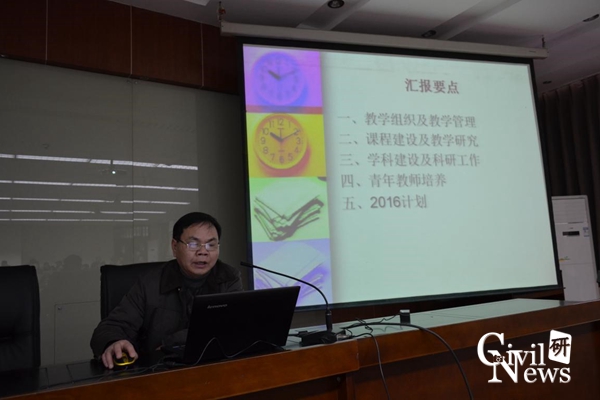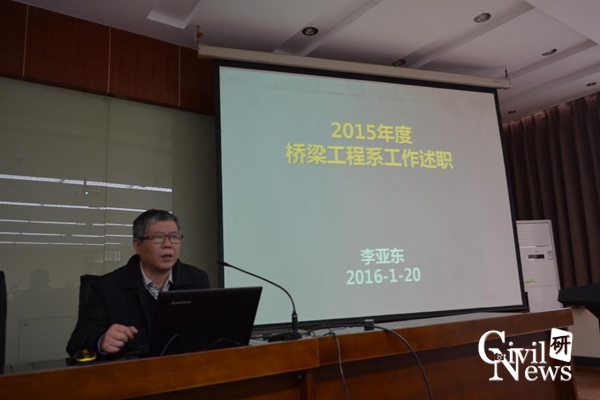 随后是bevictor伟德各系、室、中心的代表对2015年工作述职的PPT展示,其中包括道铁系(含高速铁路线路工程教育部重点实验室、道路工程四川省重点实验室)、桥梁系、地下系(含交通隧道工程教育部重点实验室)、岩土系、建工系、建材教研室、水力教研室、结构力学教研室、制图教研室、结构中心、岩土中心、风工程中心、土木实验教学示范中心、防灾减灾、国家工程实验室(含抗震工程技术四川省重点实验室)。