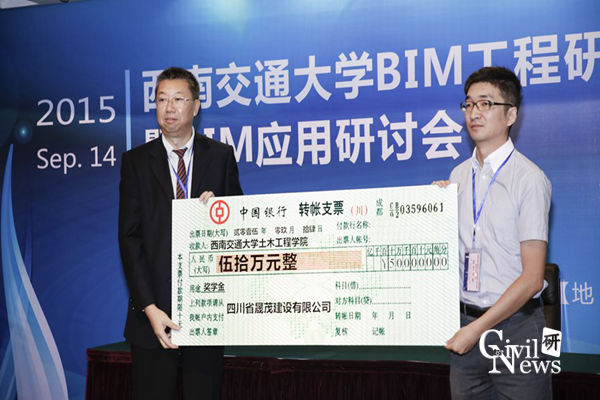 BIM中心主任高波经理代表中心与台湾宗升数位有限公司、达索析统(上海)信息技术有限公司、AutoDesk软件(中国)有限公司、Bentley软件(北京)有限公司分别签署了战略合作伙伴协议;四川晟茂建设有限公司为公司捐款50万元,用于BIM教学奖学金。