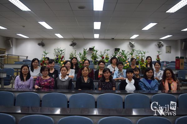 本次活动分四个阶段进行:(1)党委副书记李彤梅宣布活动开始及活动流程;(2)杨丽江老师开展专题讲座;(3)插花艺术协会的四位老师进行现场教学;(4)现场进行插花创作,并评选出佳作。