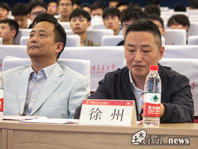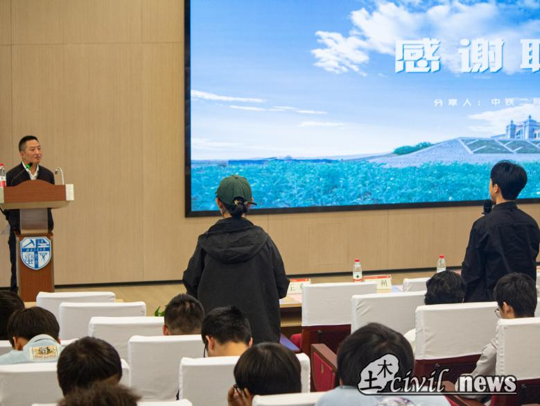 徐州员工讲述了其在埃塞俄比亚和老挝的工作经历。在埃塞俄比亚,由徐州组建的课题攻关小组通过对铁路沿线上百公里的徒步取样和上千次的配比实验,最终成功攻克了“火山灰”技术,不仅解决了当时填料匮乏的难题,节约了巨额的工程建设成本,还为埃塞俄比亚找到一种可以广泛应用的施工技术和材料,为当地的建设发展拓展了资源。在老挝,徐州带领团队创下中老铁路全线第一个桥梁桩基成桩、第一个桥梁墩台成型的记录;在20天内建成中老铁路展示馆和安全体验馆、1个月内打造出楠科内河特大桥和万象北站两个标准化施工示范段并先后被老中铁路公司评为5个“标准化工地”。徐州员工还分享了在埃、老两地的生活故事和工作经历,并鼓励同学们在奋斗中释放青春力量、在拼搏中实现个人梦想。