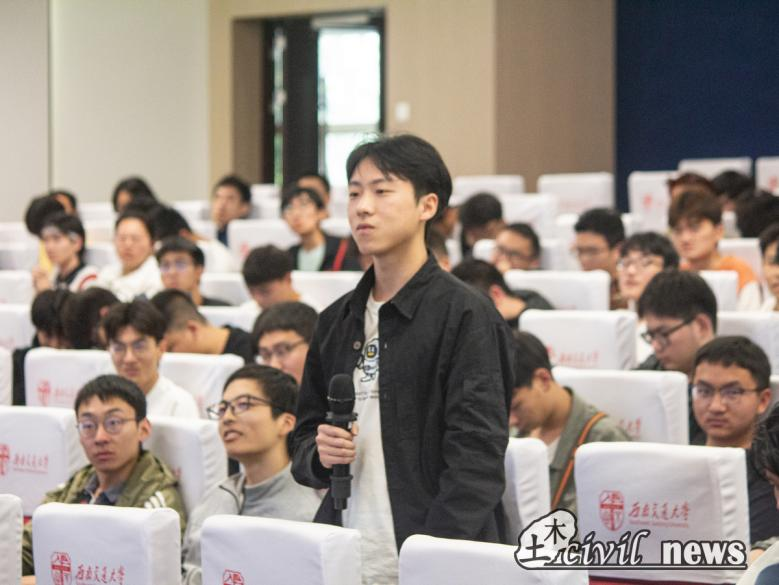 在互动提问环节,同学们就人际交往方式、行业发展前景及个人能力提升等方面向徐州员工提问。徐州员工耐心回答同学们的问题并提出个人建议和解决方法。在讲座最后,徐州员工寄语广大交大青年:“既要胸怀广阔,又要脚踏实地,勇于在时代的洪流中发挥个人特长、争做新时代中国特色社会主义现代化建设的‘螺丝钉’和开拓者!”