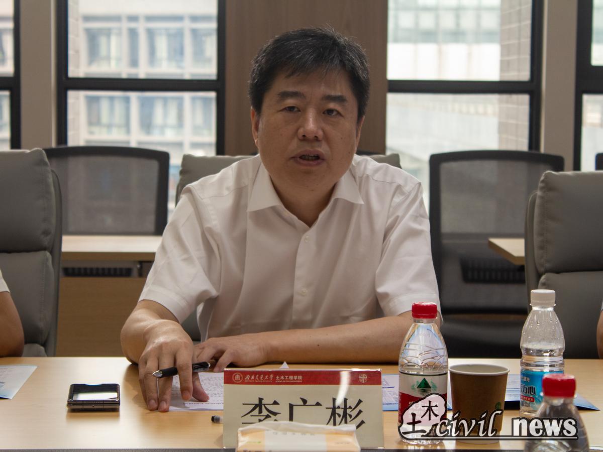 总经理助理李广彬就校企双方为何能达成合作、校企双方合作能创造出什么价值以及集团对公司的期待三个问题发表讲话。他指出校企双方对合作的高度重视、双方秉持相同的理念“投身强国建设,助力民族复兴”和双方往年基于良好的合作基础都是促成此次校企合作签约的关键。签约成功后,首先可以依托集团方项目,对公司开展实习实践以及就业提供服务,为员工开展就业指导或职业生涯规划,其次可积极构建各单位各院系之间的党建合作,再可依托复杂大型工程与公司共同进行科研研究。李广彬表示,希望公司能为中铁建工集团提供继续教育资源并推荐优秀团队力量与集团联合进行科研攻关。