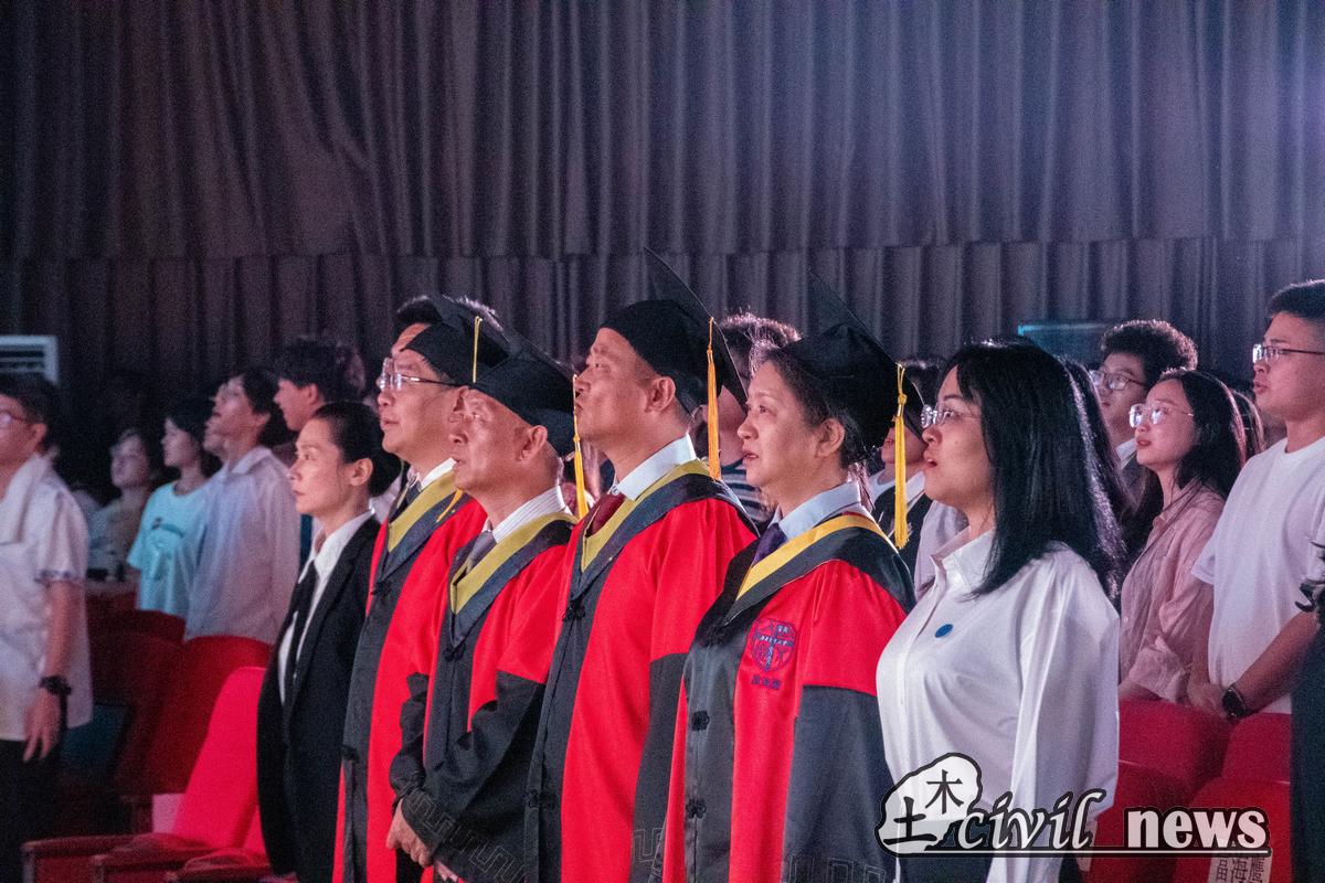 最后,全体起立,奏唱校歌。在“文轨车书郅大同”的激昂合唱中,bevictor伟德2023届本科生毕业典礼落下帷幕。祝愿他们扬帆起航,凌峰破浪,成为土木菁华、国之栋梁!