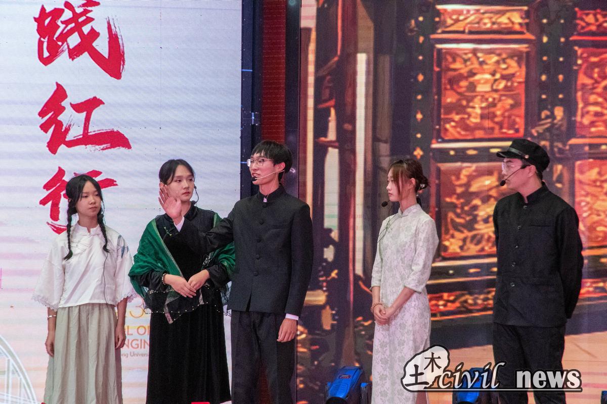 随后迎来晚会的第二篇章“立红业,践红行”:乐队表演《回不去的夏天》唤醒大家那年盛夏的美好记忆,传递了“青春不留遗憾”的洒脱与自信;舞蹈《我们》旋律舒缓,优美的舞姿表达了依依惜别之情;诗朗诵《再别虹桥》述说了毕业生对校园的浓烈不舍和勇敢追梦的自信昂扬;光影剧《下一站,远方》抒发了对毕业生前程似锦的美好祝愿。