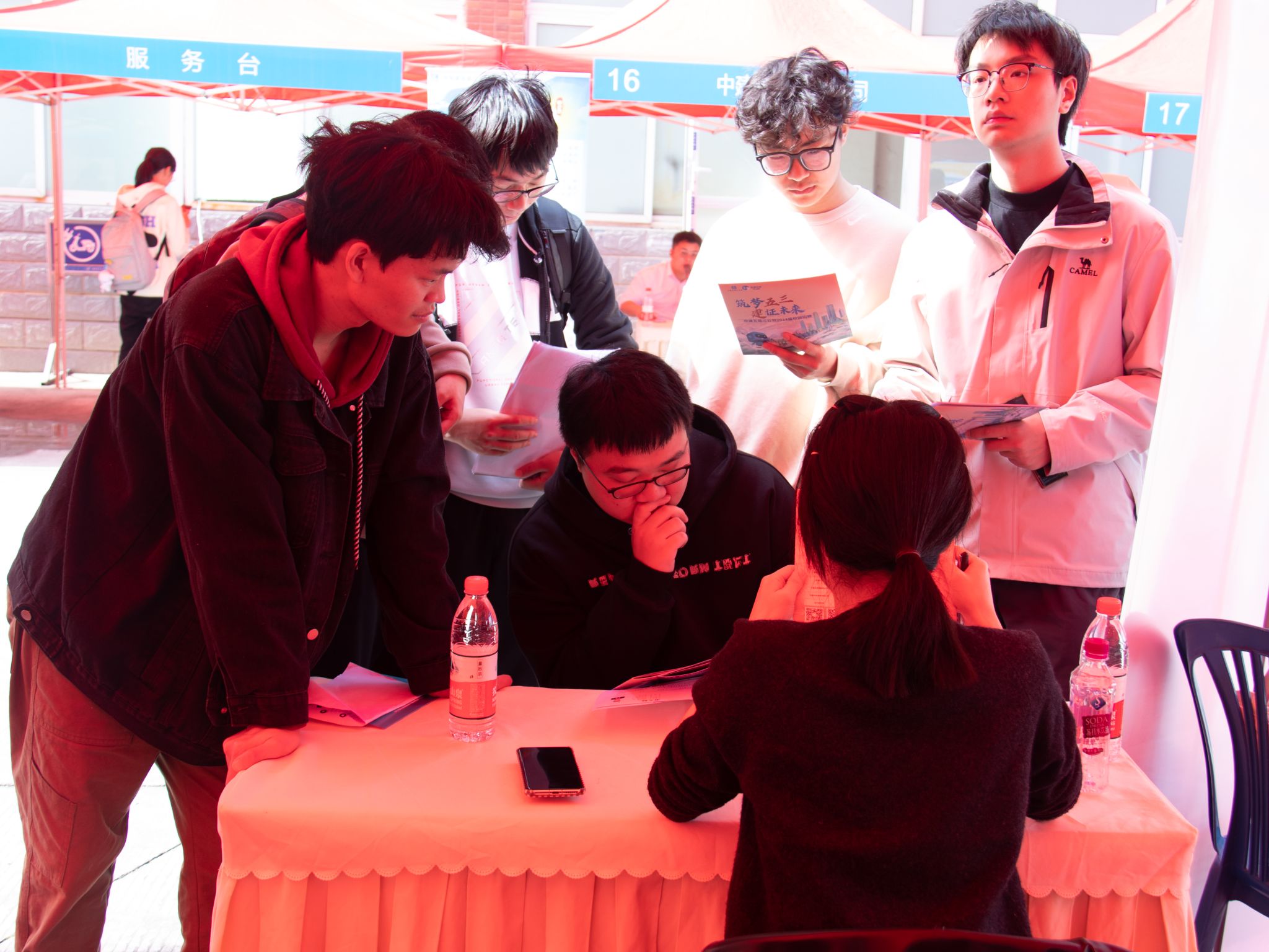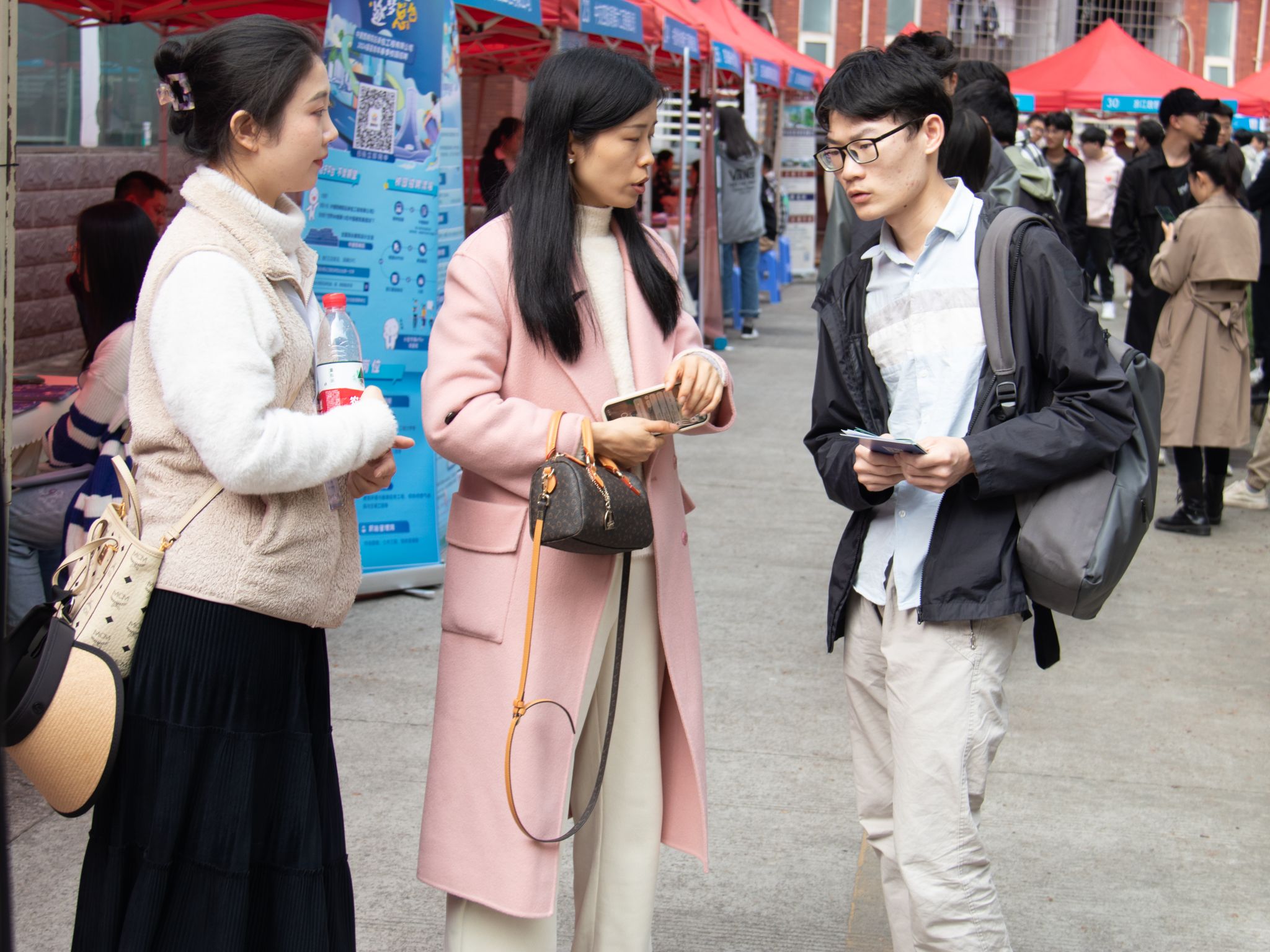 双选会现场,氛围热烈而有序,各个企业的展位前皆吸引了一众毕业生。毕业生们穿着整洁的服装,带着精心准备的简历,积极与企业招聘人员面对面交流,就招聘条件、工作内容、薪资前景等细节展开深度沟通。