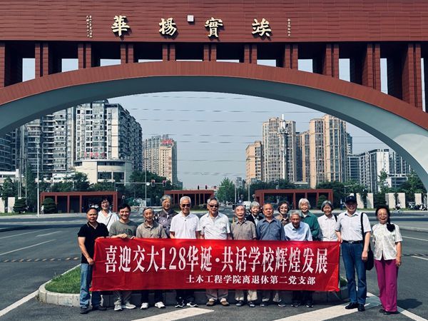 2024年5月22日早9:00土木离退休第二党支部以原董事长沈大元教授、原副董事长刘学信教授为表率的12名支部成员及家人准时在九里校区晚晴苑乘校车出发到犀浦校区与支部其他4位成员汇合在犀浦校区参观共览公司发展,共庆交大128华诞。