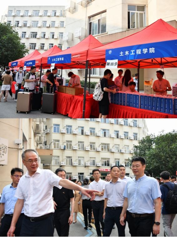 2024年8月29日上午7:00,九里校区眷诚斋宿舍园区内已是热火朝天,迎新志愿者和辅导员老师们忙碌着布置迎新点,搬运物资,为迎接新同学的到来做好了充分的准备。到了8点左右,随着摆渡大巴陆续抵达唐臣路,迎新工作正式拉开帷幕。