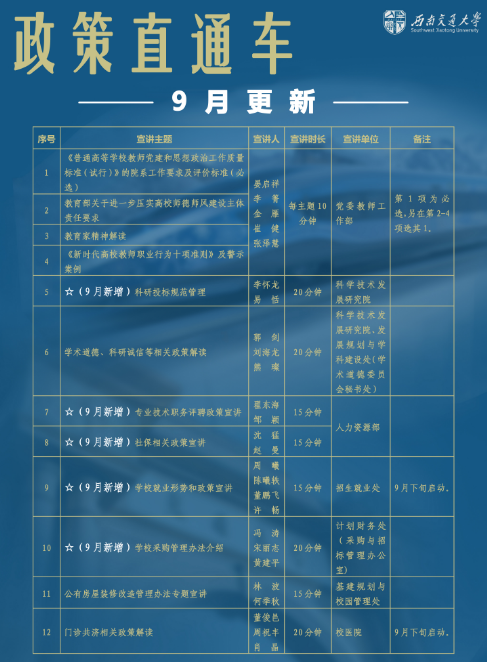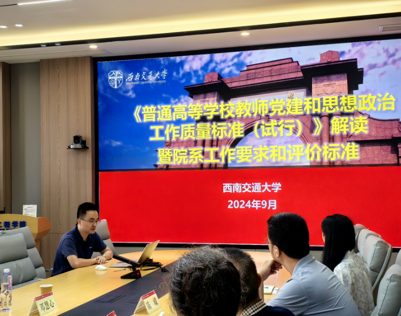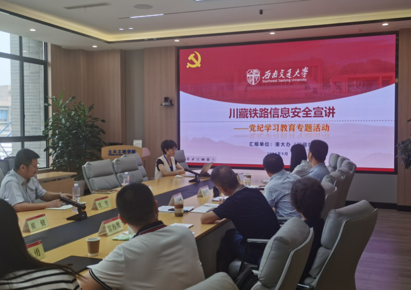 2024年9月19日上午10点,bevictor伟德在犀浦校区4417A会议室召开党委和党政联席会议,公司领导班子成员、全体党委委员、科职干部以及部分教师代表参加了本次会议。会议邀请了公司机关与直属单位党委常务副书记沈哲、机关与直属单位党委综合管理办公室副主任奉天、党委教师工作部思政科科长崔健、重大工程办公室(川藏铁路研究院)项目主管邓慧心到会进行了“政策直通车”宣讲。本次宣讲的主要内容是师德师风建设专题和CZ铁路信息安全工作政策专题。