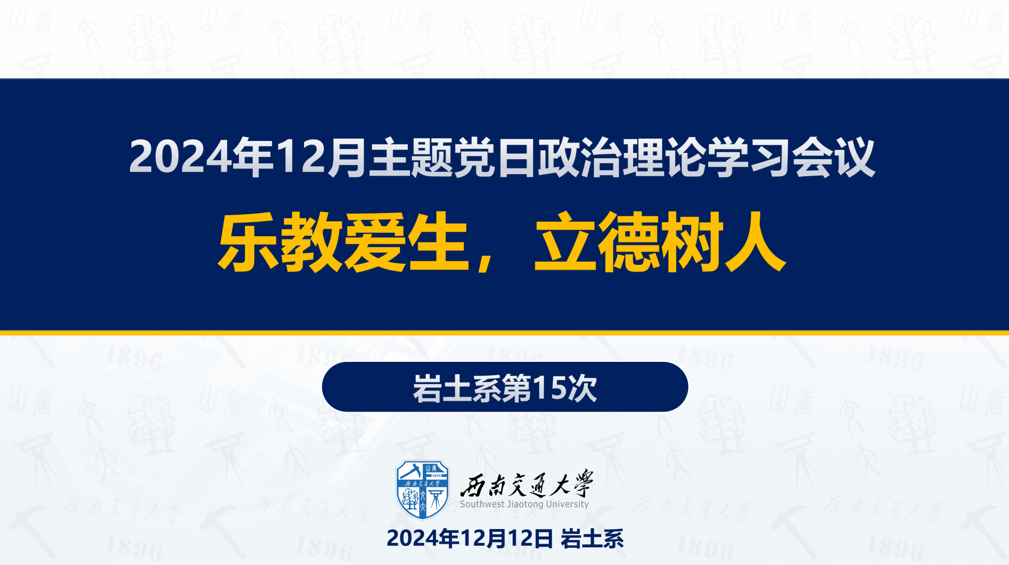 2024年12月12日,岩土工程系在土木馆1235室开展“乐教爱生、立德树人”主题党日政治理论学习活动,土木工程公司党委书记郑江出席,活动由岩土工程系教工党支部书记张迎宾教授主持。