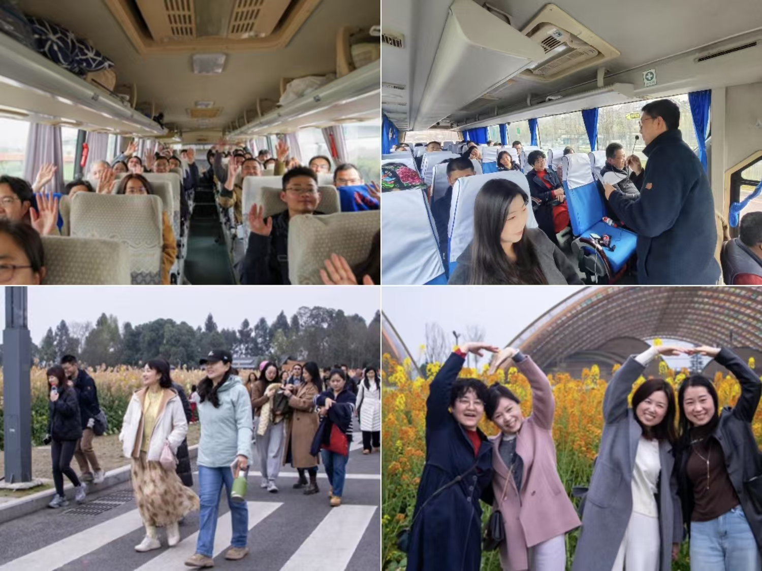 在自由活动环节中,老师们终于有机会暂时摆脱繁重的工作,偷得浮生半日闲。他们或围坐在草甸之上,借一杯香茗拉近彼此间的距离;或徜徉于曲径之间,撷一缕香风享受三月的春光。直到日影西斜时,大家才依依不舍地踏上返程的大巴。