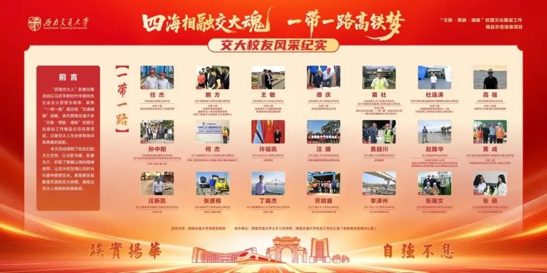 四海相融交大魂,一带一路高铁梦。一百二十九载岁月流转,交大人的足迹遍布山河寰宇。自“四海交大人”影像征集活动开展以来,全球员工积极响应、踊跃参与。27期精心打磨的推送,115位员工的投稿,如同一封封跨越山海的家书,互诉心中的牵挂与思念。200余帧珍贵影像从四海汇聚,从不同维度勾勒出交大人波澜壮阔的精神图谱。如今,在万千交大人的支持和关注下,这次传承交大精神的情怀之旅正式落下帷幕。