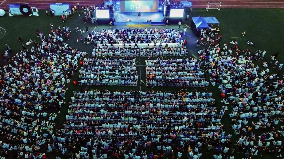 图为建校129周年员工返校活动中公司院友航拍出“土木”字样