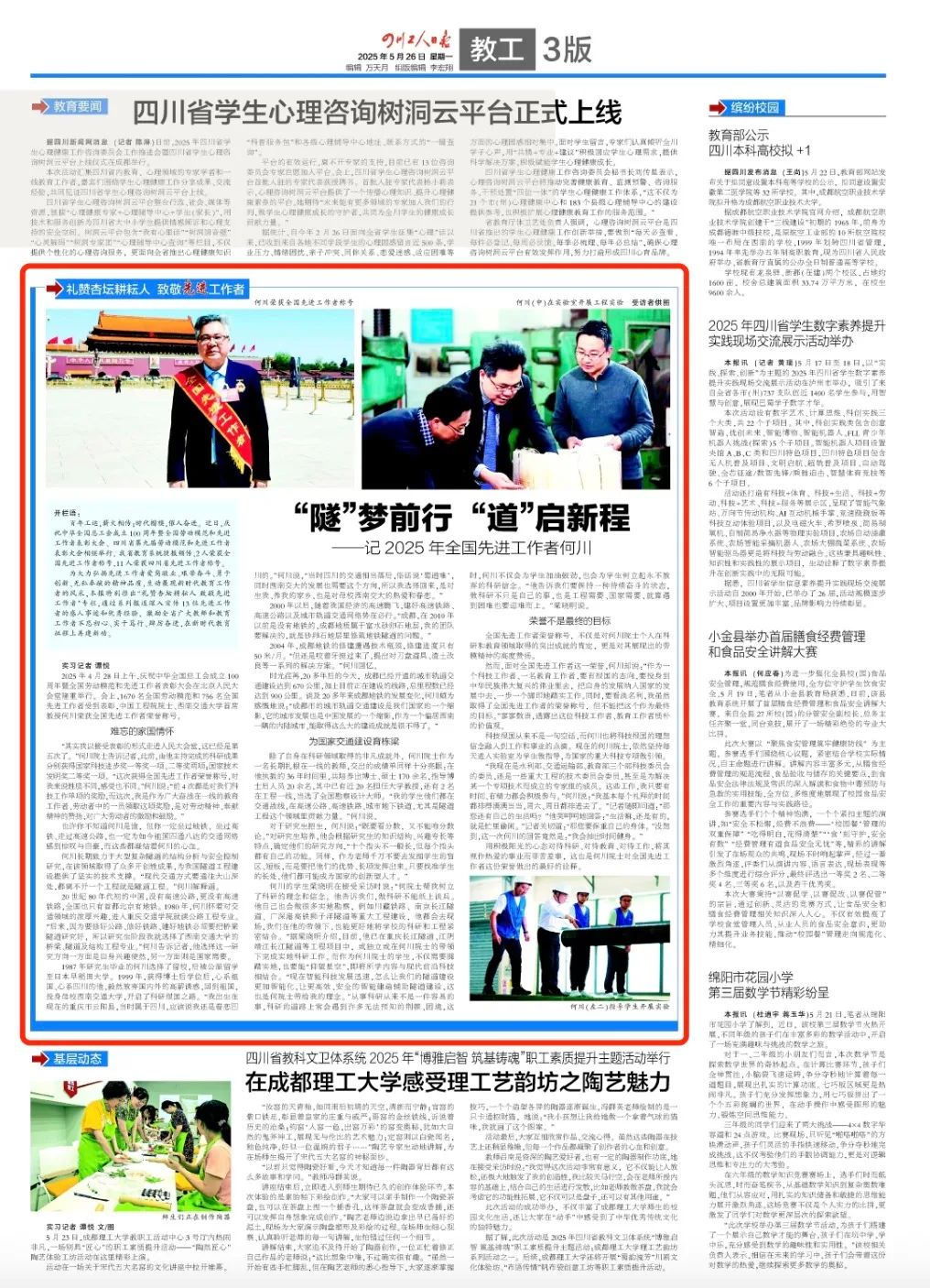 5月26日,四川工人日报以《“隧”梦前行 “道”启新程——记2025年全国先进工作者何川》为题,聚焦报道中国工程院院士、伟德源自英国1946首席教授、2025年全国先进工作者何川。