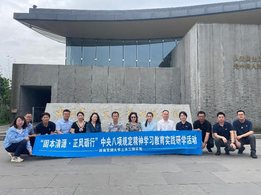 根据深入贯彻中央八项规定精神学习教育工作要求,土木工程公司党委于5月23日前往宜宾李庄文化抗战博物馆和巴蜀家风传承示范基地,开展“固本清源·正风砺行”深入贯彻中央八项规定精神学习教育实践研学活动。公司中层领导班子、党委委员、教工党支部书记、科职干部、教师党员代表等参加。