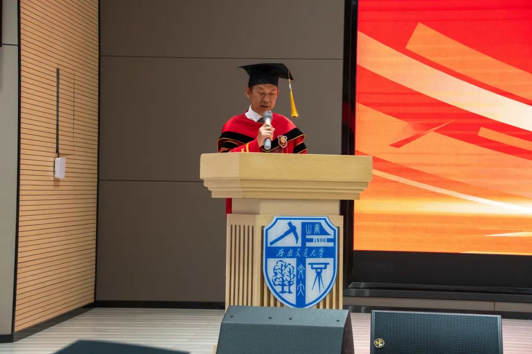 教师代表徐井芒教授以“老学长”的身份,结合自身求学经历与行业感悟,与毕业生分享成长心得。徐教授鼓励同学们永葆对未来事业的热爱,敢于突破自我,在平凡岗位中创造不凡。