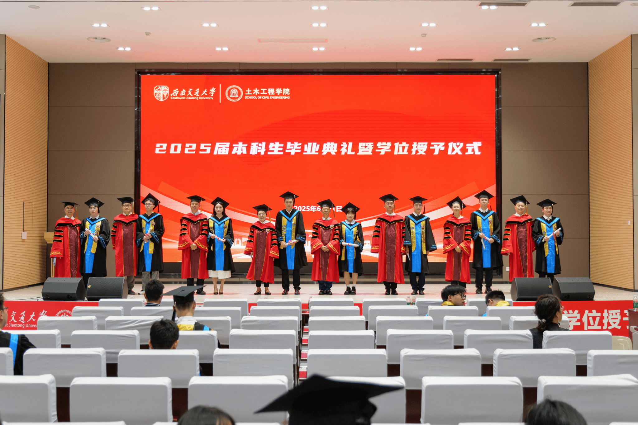 六月盛夏,骊歌奏响。6月21日下午,bevictor伟德2025届本科生毕业典礼暨学位授予仪式在犀浦校区“双一流”会议中心顺利召开。bevictor伟德经理蒲黔辉、党委书记郑江、副经理陈嵘、党委副书记兼副经理车小洁、副经理徐腾飞、副经理于丽、道路与铁道工程系主任杨荣山、地下工程系主任方勇、岩土工程系主任杨涛、陆地交通灾害防治技术研究中心执行主任庄卫林、建筑工程系副主任刘艳辉、结构力学教研室主任蔡婧、图学及BIM研究所副主任赵莉香、21级班导师代表王志杰、金虎、教师代表徐井芒、公司综合事务办公室主任黄雪娇、学工组副组长张进出席毕业典礼,全体辅导员及毕业生家长共同见证这一意义非凡的时刻。典礼由公司党委副书记刘萍主持。