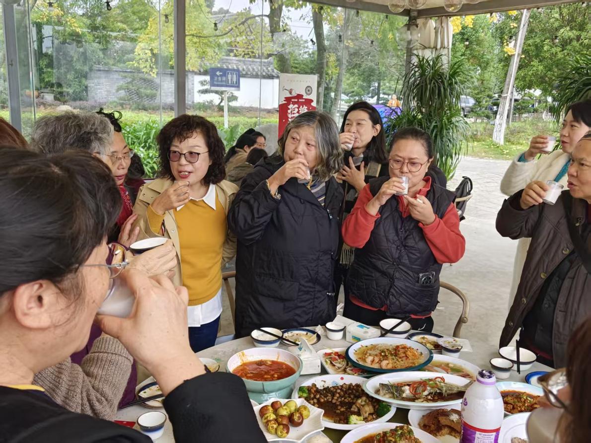 餐后,老师们围坐桌旁,漫享悠然的午后。在暖融融的氛围里,老同事们一边啜饮香茗,一边追忆往昔那些闪亮又难忘的流金岁月。