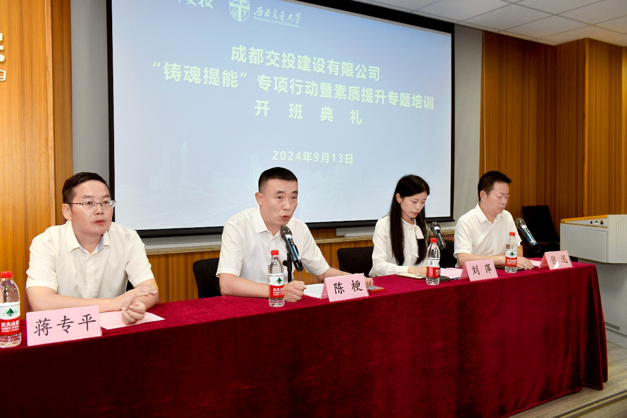 9月13日上午,成都交投建设有限公司“铸魂提能”专项行动暨素质提升专题培训——道路养护技术与项目管理高级研修班开班典礼在伟德源自英国1946九里校区土木馆1234教室顺利举行。成都交投建设有限公司党支部书记兼董事长陈梗、副书记兼工会主席蒋专平,伟德源自英国1946土木工程公司党委副书记刘萍出席了本次开班典礼。开班典礼由公司培训中心副主任张迅主持,公司培训中心全体人员参加了开班典礼。