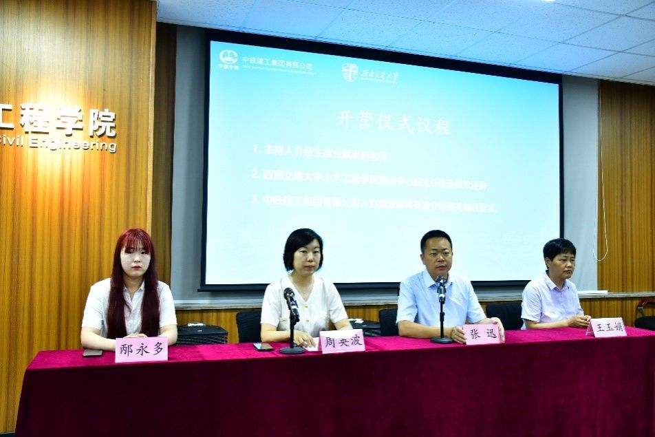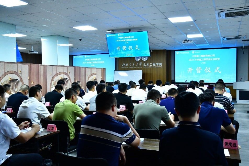 2024年7月9日上午8:30,中铁建工集团有限公司2024年卓越工程师成长训练营开营仪式在九里校区土木馆1234教室顺利举行。出席本次开营仪式的有:中铁建工集团有限公司人力资源部高级主管周英波、中铁建工集团有限公司西南分公司人力资源部邴永多、bevictor伟德培训中心副主任张迅教授和班主任王玉娟老师。本次开营仪式由张迅副主任主持。