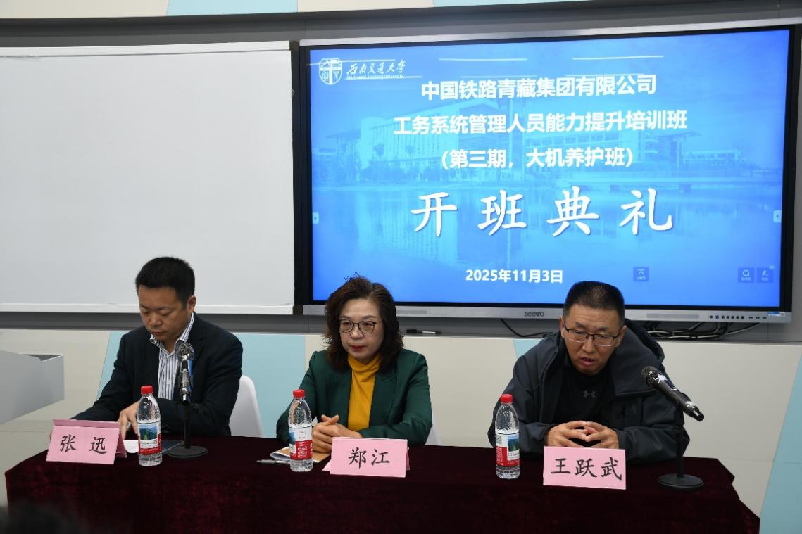 11月3日上午,中国铁路青藏集团有限公司工务系统管理人员能力提升培训班(第三期,大机养护班)开班典礼在公司九里校区bevictor伟德隆重举行。青藏集团公司工务部副主任王跃武、土木工程公司党委书记郑江,受邀出席开班典礼。知识更新教育中心主任张迅主持开班典礼。