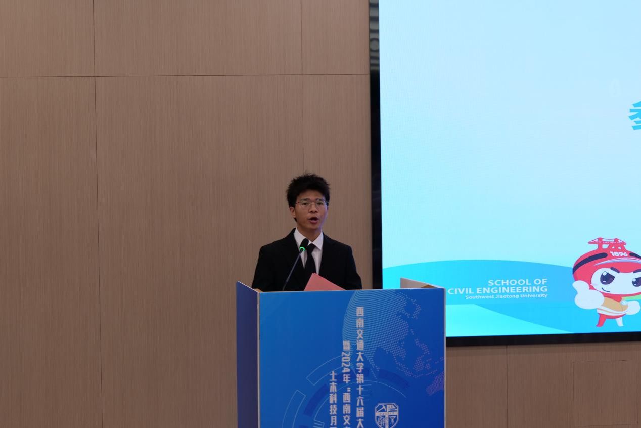 曹晓华同学作为参赛代表首先对科技月组委会以及承办单位表示感谢。曹同学表示,土木科技月竞赛是一场汇集交大优秀学子的盛会,也是展示青春活力和创新智慧的舞台,这对于竞赛精神、团队协作能力、个人综合素质等都是一次巨大的锻炼和提升机会。
