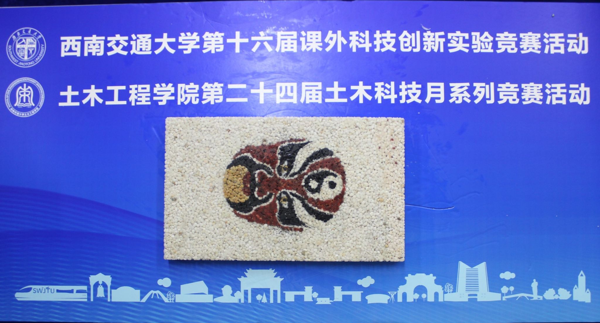 本次竞赛的赛题为“聚合物彩色透水铺装”,本届模型竞赛的主要内容包括:(1)道路模型的设计与计算分析;(2)道路模型透水性测试;(3)道路模型抗剥落性测试;(4)道路模型抗滑性测试;(5)道路模型美观度。此次比赛由陈述答辩与性质测试两部分构成,采用了先进行答辩再进行测试的方式。