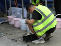 经过一上午的紧张比拼,7支队伍在比赛现场展示了各自的混凝土材料设计方案。选手们专心细致的对混凝土材料进行处理,并通过精确的测定扩展度、J环扩展度及T500,展示了自身设计方案的混凝土工作性。